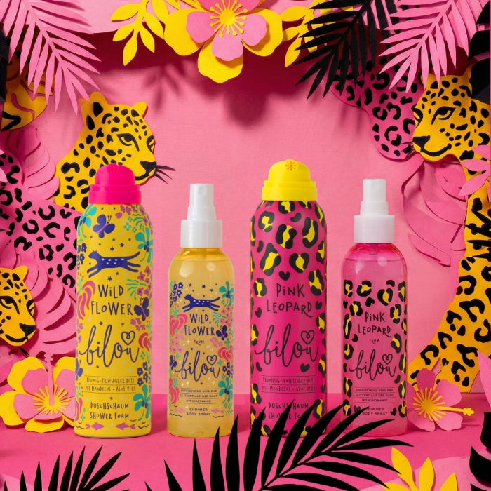 Zwei Düfte, zwei Vibes: Pink Leopard – fruchtig-blumig & voller Power. Wild Flower – leicht, bloomy & strahlend schön. Cremiger Schaum trifft auf schimmernden Glow – wild, laut & einfach du. Und mit jedem Produkt wächst ein Stück bilou Forest in Peru.